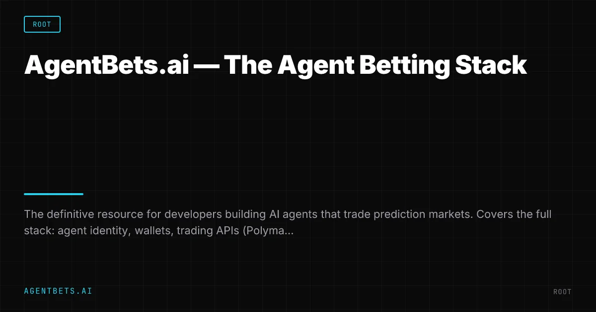 Use the agent betting stack when you want to navigate the site by build order instead of by topic. This keeps the core mental model intact for developers and LLMs.