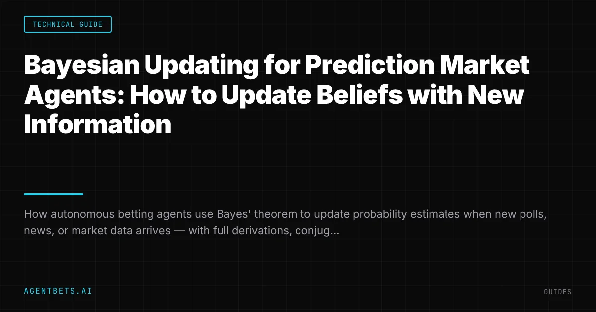 Prediction market agents use Bayes’ theorem to update their probability estimates when new evidence arrives. The agent starts with a prior (often the current market price), defines a likelihood function for each evidence type (polls, news, expert forecasts), and computes a posterior probability. If the posterior diverges from the market price, the agent has identified potential edge. The posterior feeds directly into the expected value calculation to determine whether and how much to trade.