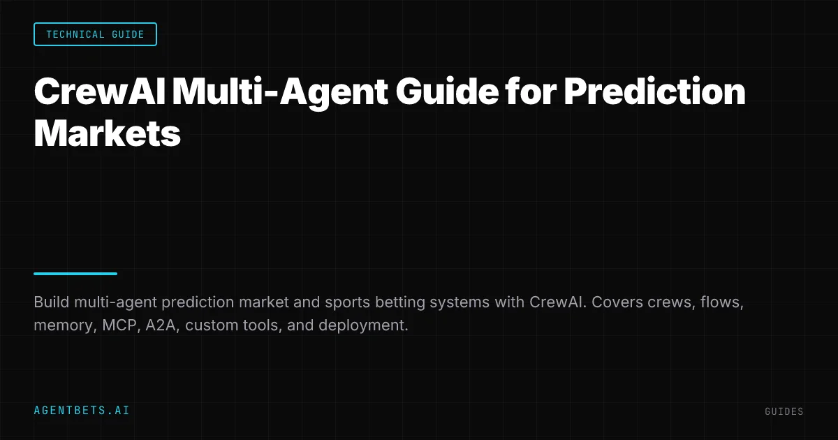 CrewAI is an open-source Python framework for building teams of AI agents that collaborate autonomously. This guide covers how to use CrewAI for prediction market research, sports betting analysis, and automated trading pipelines — with working code, architecture patterns, and production deployment strategies. CrewAI sits at Layer 4 (Intelligence) of the agent betting stack.