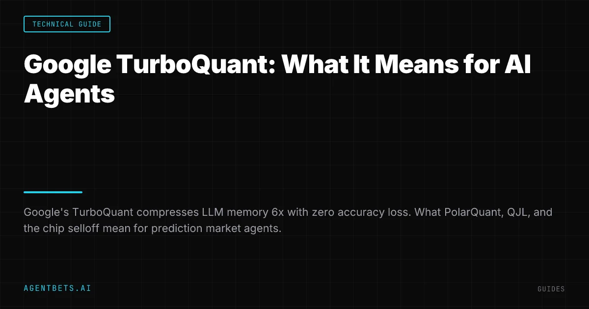 Google Research published TurboQuant on March 24, 2026 — a compression algorithm that shrinks LLM key-value cache memory by 6x and delivers up to 8x inference speedup on NVIDIA H100 GPUs, with zero accuracy loss. Memory chip stocks fell within hours. Here’s what it actually is, why it matters, and what it changes for anyone building AI agents that trade prediction markets or sportsbooks.