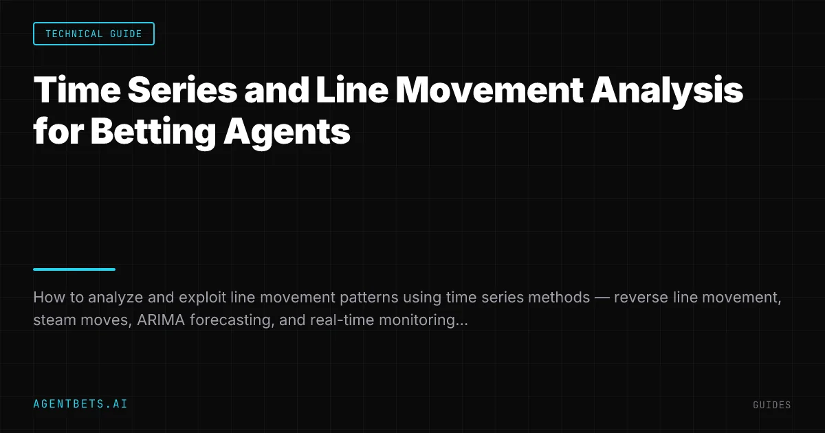 Line movement analysis and closing line value (CLV) are deeply connected. CLV measures whether you beat the closing line — the most efficient price. Line movement analysis tells you when and why lines move, helping agents enter positions early when the line will move in their favor. Consistently capturing positive CLV is the strongest predictor of long-run profitability. See the Closing Line Value guide for the full CLV framework.