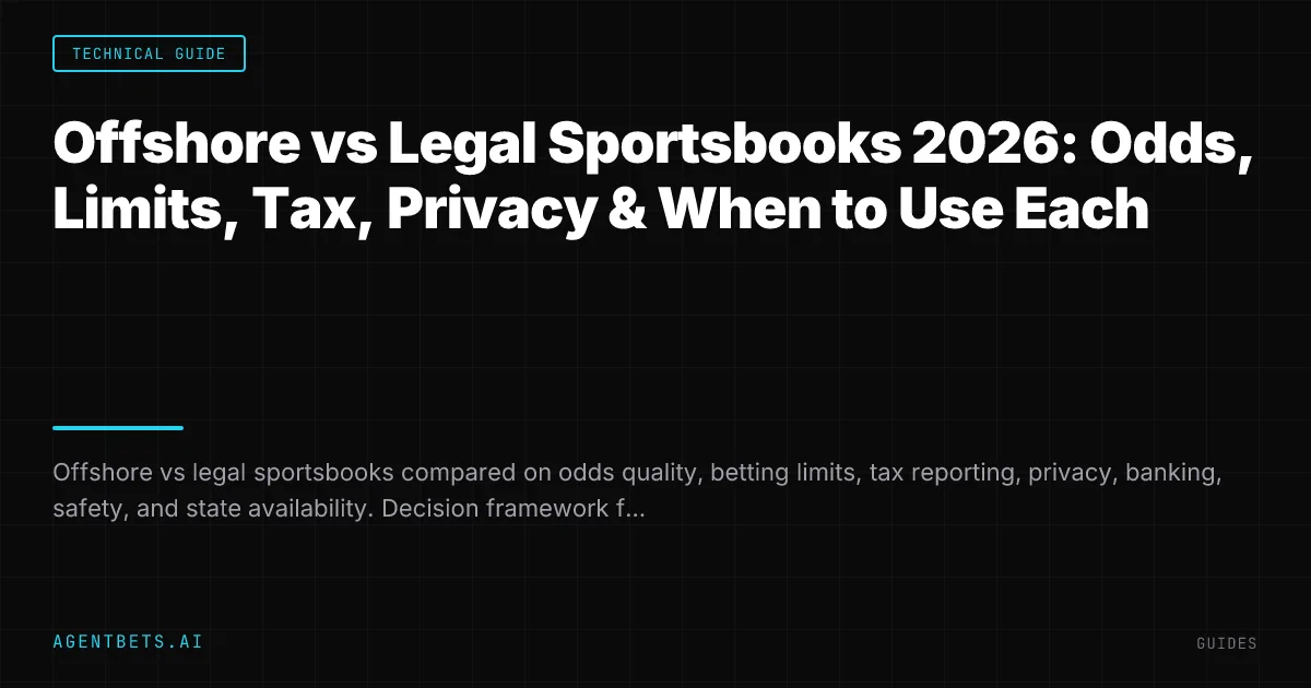 The internet is full of sportsbook comparison content that either demonizes offshore books to push regulated affiliate links or glamorizes offshore books without acknowledging the real tradeoffs. This guide does neither. Here is the comparison across every dimension that actually matters to your betting: odds, limits, taxes, legality, safety, banking, privacy, and automation.