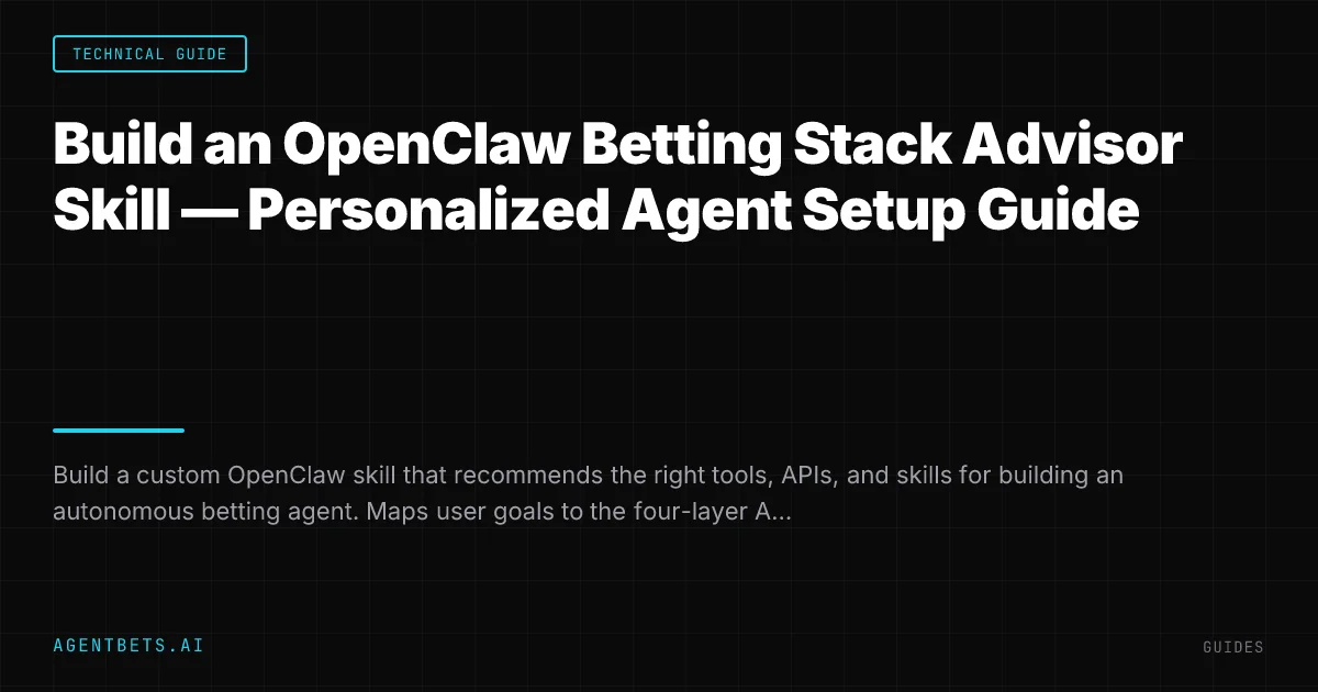 This guide is part of the AgentBets OpenClaw Skills series. We’re building a complete library of betting-specific OpenClaw skills that map to the four layers of the Agent Betting Stack: