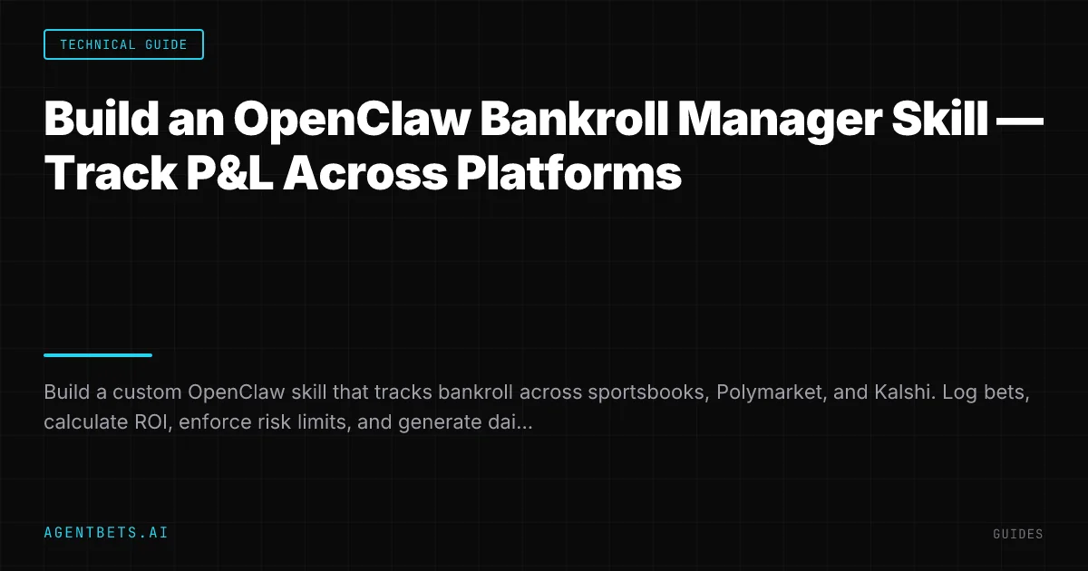 Build a custom OpenClaw skill that tracks your bankroll across every platform you bet on. One SKILL.md file, a SQLite database, and your agent can log bets, calculate ROI, enforce risk limits, and tell you exactly where your money is.