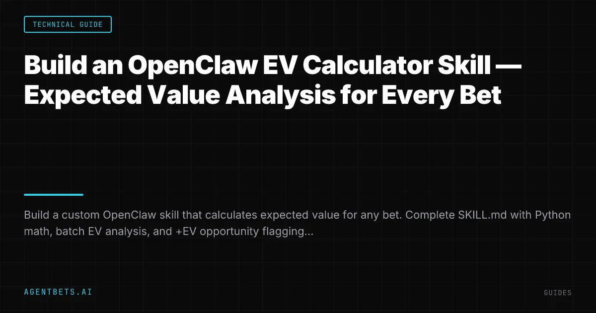 Build a custom OpenClaw skill that tells your agent whether a bet is worth taking. One SKILL.md file, zero dependencies beyond Python 3, and your agent can calculate expected value for any bet — the single most important number in sharp betting.