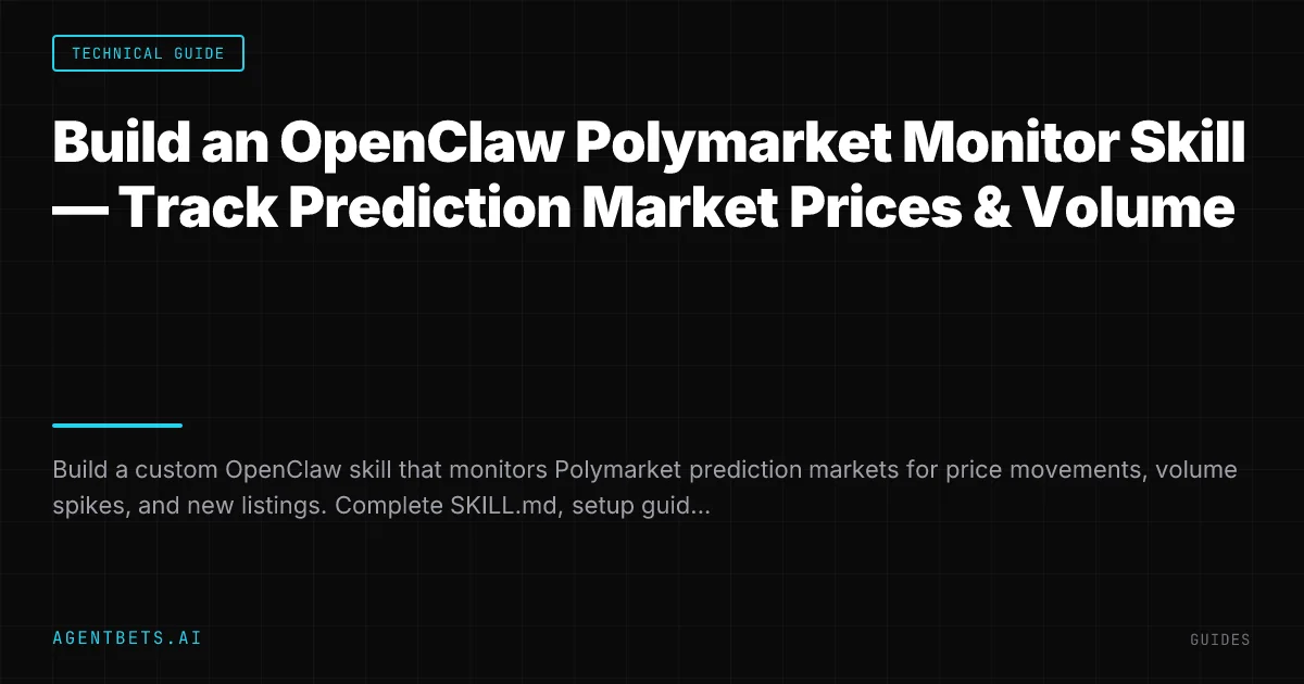 Build a custom OpenClaw skill that monitors Polymarket prediction markets for price movements, volume spikes, and new listings. No API key needed — just one SKILL.md file and your agent tracks prediction markets in real time.