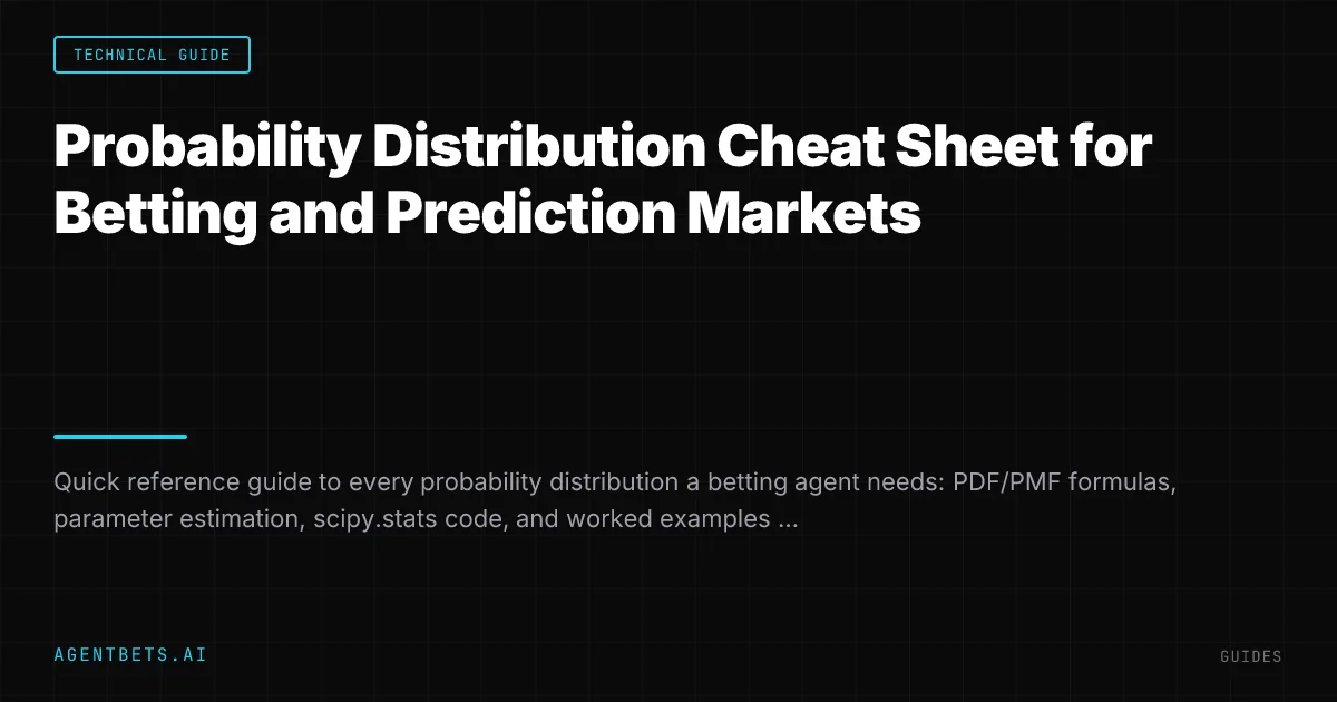 - Deep dive on any distribution: The Poisson sports modeling guide and Bayesian updating guide give full treatments of the two most important distributions for betting agents.
