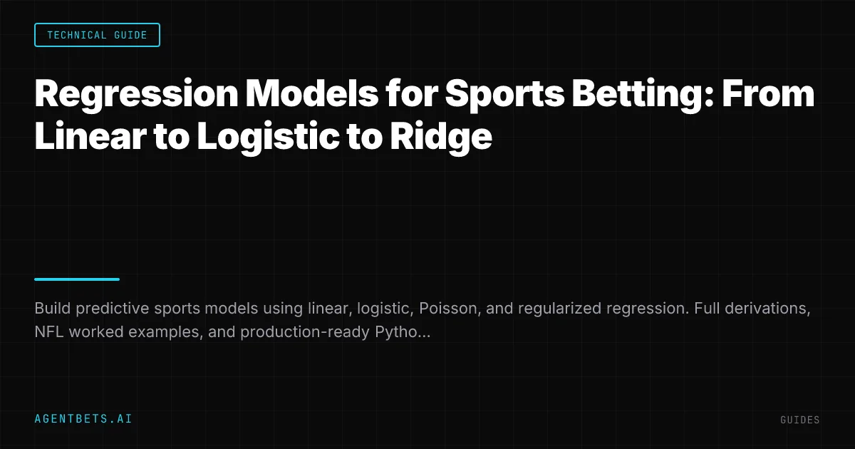 - NFL-specific modeling: The NFL Mathematical Modeling guide applies these regression techniques to point spreads, totals, and player props with NFL-specific feature engineering.