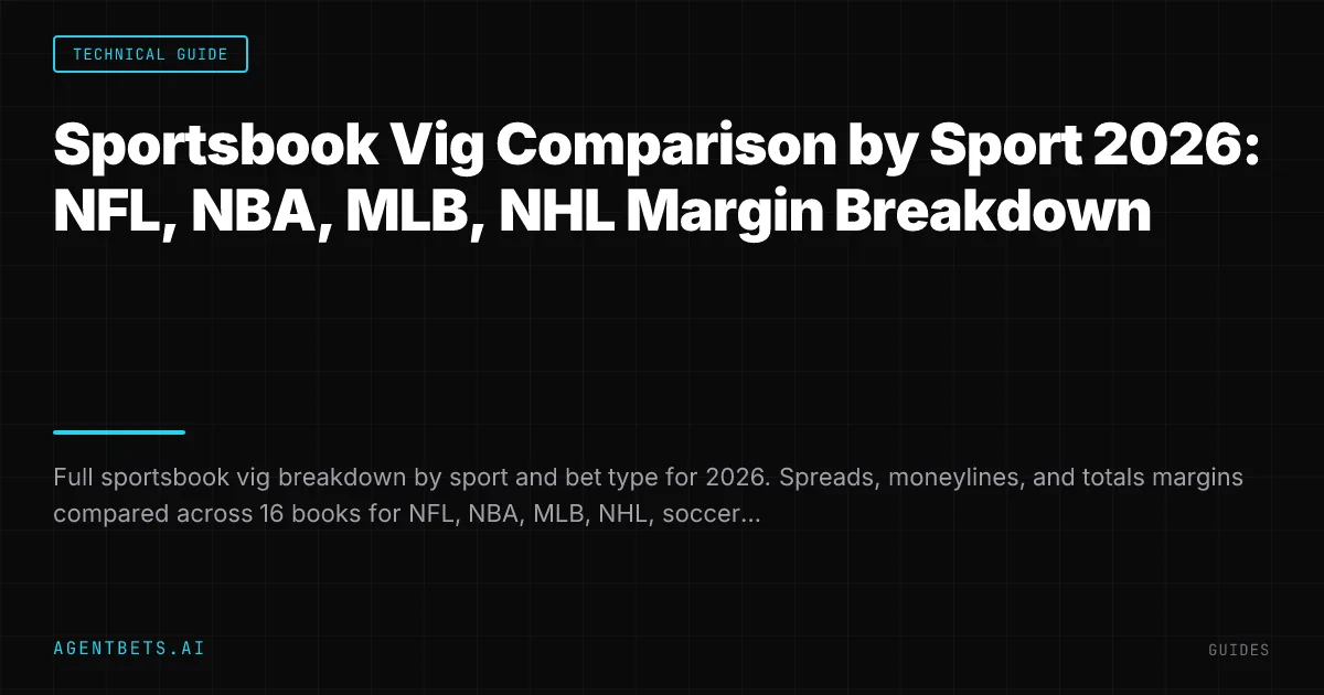 AI betting agents in the agent betting stack use sport-specific vig data as a core routing input. An agent that routes NFL bets to Circa (2.2% vig) instead of Bovada (5.1% vig) saves 2.9% on every wager — that is $5,800 per year on 1,000 bets at $200 average.