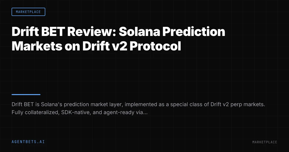 - Market availability — BET markets are created by Drift governance, not permissionlessly. Market selection is limited compared to Polymarket.