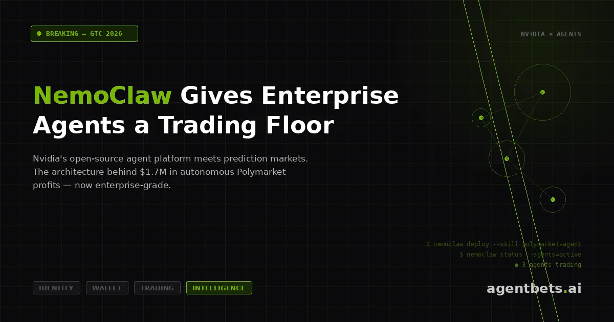 OpenClaw proved that autonomous agents can trade prediction markets profitably. NemoClaw is Nvidia saying: now let’s make this enterprise-grade.